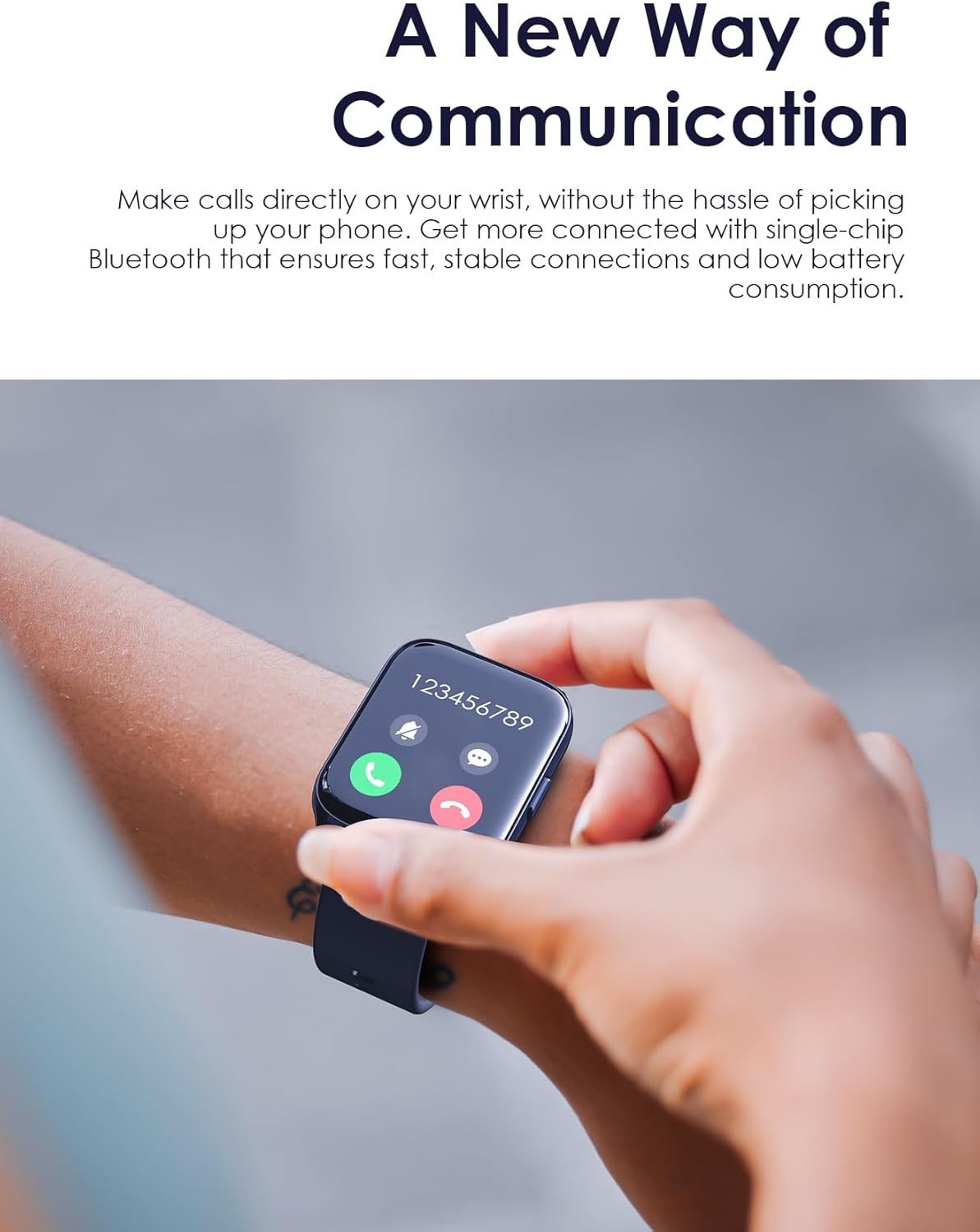 - 【Wireless Call,A New Way of Communication】 Make calls directly on your wrist, without the hassle of picking up your phone. Get more connected with single-chip Bluetooth that ensures fast, stable connections and low battery consumption.